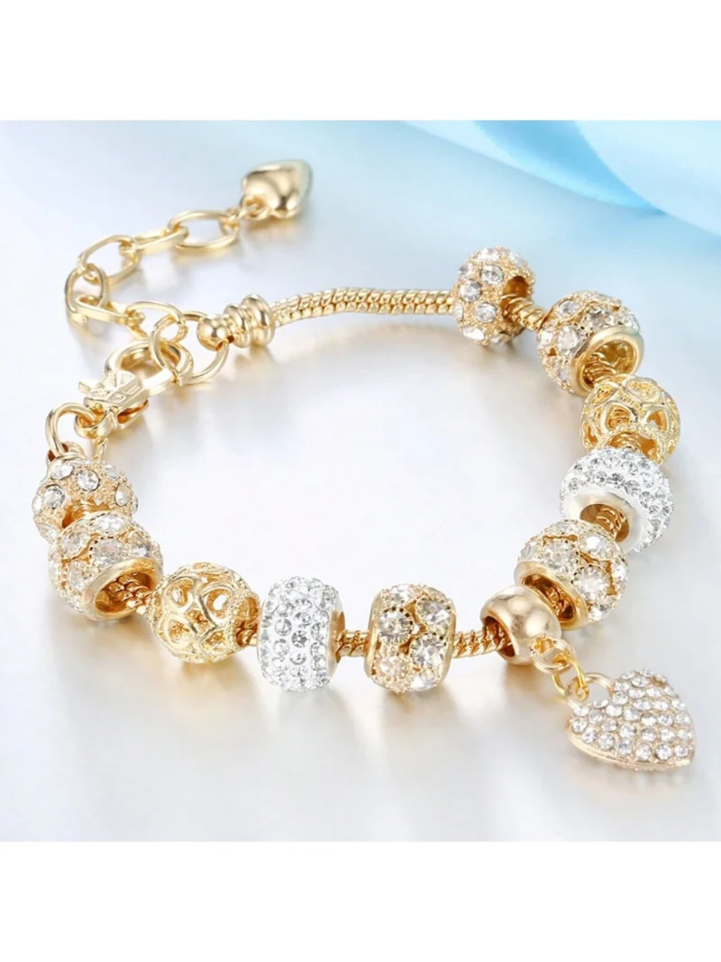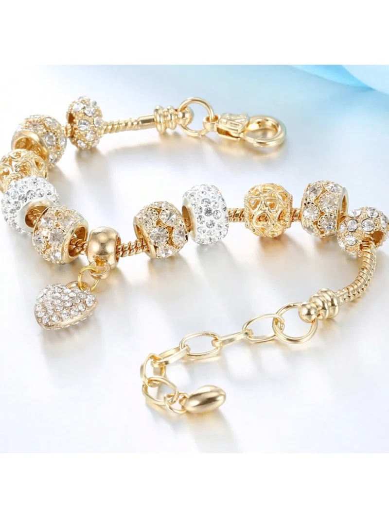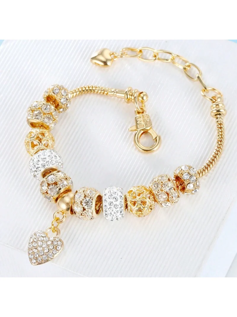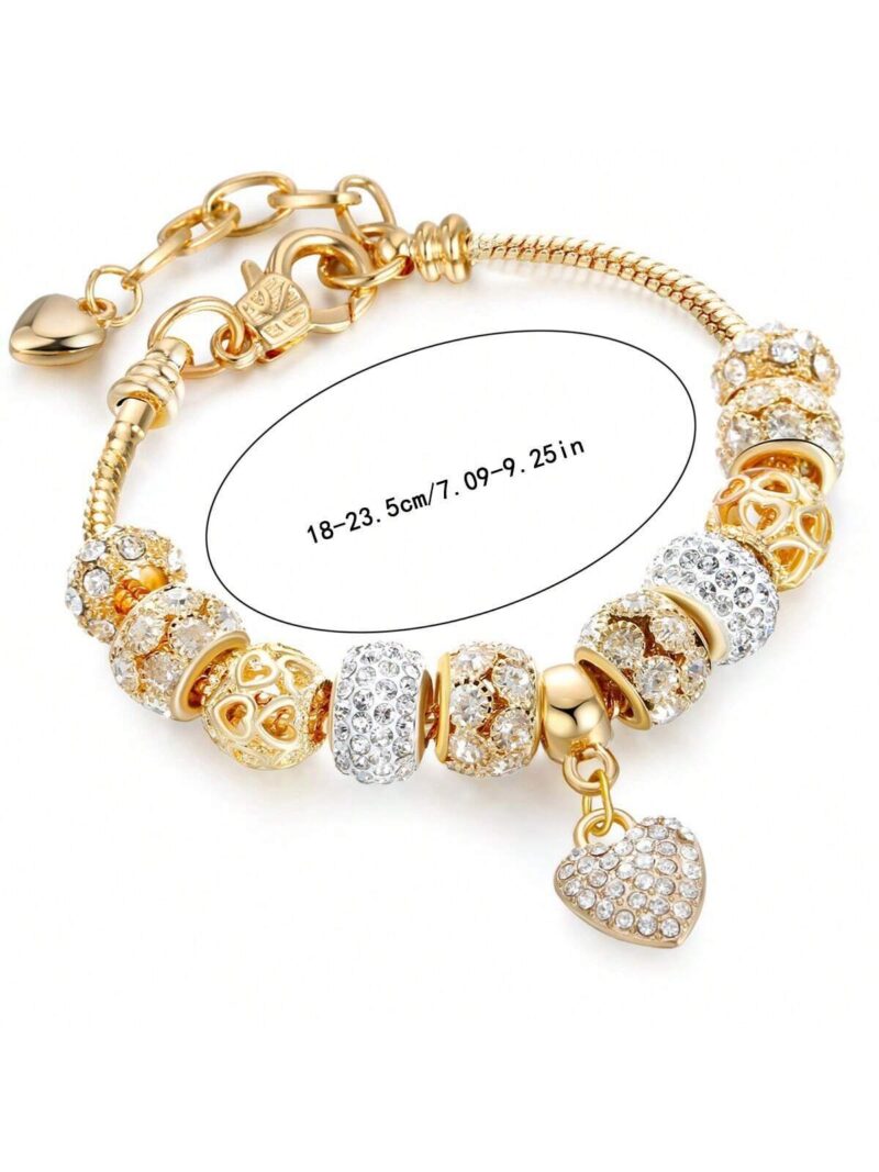 1pc Gold-Tone Micro Pave Zirconia Heart Pendant with Creative Hollow Beaded Chain Extender Bracelet Perfect for Everyday Wear