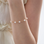 The inclusion of natural freshwater pearls elevates the design. Pearls have long been associated with purity and beauty, and their soft, iridescent glow complements the rich gold hue of the bracelet. These pearls are sourced from freshwater environments, known for their natural, organic shapes that add a unique charm to every piece.